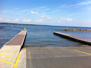 It was pretty to sit in this area and available because there were no campers but I got no hits. So, I moved to the boat docks. The boat docks were also shallow and I brought up lots of weeds. I've said this in other posts but I have never had any luck shore fishing the Oneida Lake or River. I have the best luck in the Oswego River. Today was no exception.